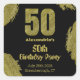 Adesivo Quadrado Festa de 50 anos em preto e dourado brilhante