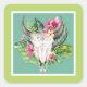 Adesivo Quadrado Festa de Aniversário Boho Floral Caveira Azul Turq