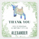 Colorida Watercolor, um obrigado de cabra bebê saltando em água, você favorece bolsas com folhagem e verde, ideal para uma festa de aniversário de criança especialmente celebrações de temas fazendas. As palavras "Obrigado por celebrar o meu aniversário comigo" com um nome de criança personalizado. Uma tipografia colorida e divertida moderna que é fácil de personalizar usando o modelo. Arte original da artista Catherine Sweetman