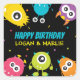 Adesivo Quadrado Festa de aniversário de Monstro Conjunto