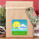 Seu sol está tendo uma festa de aniversário? Faça dele uma ocasião ensolarada com os adesivos azuis e amarelos da Festa de aniversário solar desenhados pela Enchantfancy Design Company. Este tema de festa bonitinho é uma escolha perfeita para festas de aniversário infantis. O design apresenta um sol sorridente vestindo uma bela gravata azul de arco. O fundo azul do céu e a grama verde abaixo adicionam um toque de verão.