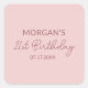 Adesivo Quadrado Bochecha de Festa de Aniversário Rosa Fofo Nome