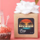Adesivos de festa de despedida de solteira no acampamento Retro Beach para combinar com suas camisetas. Estes banners personalizados mostram um pôr do sol retrô com uma frase que combina com o clima da viagem de suas garotas e um ótimo cenário para todas as suas fotos de férias.