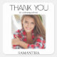 Adesivo moderno de agradecimento para festa de formatura com letras elegantes e bordas arredondadas na sua foto. Personalize com o seu nome. Perfeito para graduados do ensino médio ou faculdade. Sele envelopes ou sacolas de lembrancinhas. Entre em contato para obter ajuda com suas personalizações ou para solicitar produtos Zazzle adicionais correspondentes ou coordenados para a sua formatura.
