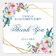 Flores de cor aquosa, cor-de-rosa e branco, de cor azul-claro, dentro de uma estrutura dupla geométrica dourada, apresentam floreios botânicos e de bagas. Personalize este elegante adesivo de festa de solteira floral boho com sua própria mensagem ou mantenha esta tipografia popular como é para sua conveniência. MIx e combinar com outros itens nesta bela coleção de casamento.