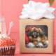 Adesivo Quadrado Festivo de Natal do Cão Espanhol Tibetano