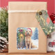 Adesivo Quadrado Field Spaniel Snowy Fence Santa Hat Christmas Art