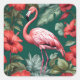 Adesivo Quadrado Flamingo Hibiscus Flores Emerald Green