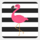 Adesivo Quadrado Flamingo Rosa-Rosa-Stripe Preto e Branco
