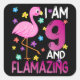 Adesivo Quadrado Flamingoo | I Am 9 Incrível Nono Aniversário