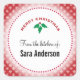 Este adesivo quadrado apresenta um fundo vermelho escuro com pequenos flocos de neve brancos, um círculo branco acentuado com holly de Natal verde e o texto: MERRY CHRISTMAS da cozinha de: (texto personalizável para você adicionar seu nome). Este adesivo personalizado é perfeito para selar doces de Natal que você fez como presente para uma pessoa especial.