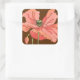 Adesivo Quadrado Flor rosa grande com fundo vermelho profundo