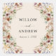 O adesivo quadrado de flores silvestres Vintage Boho é uma maneira encantadora de adicionar um toque pessoal aos detalhes do seu casamento. Este adesivo apresenta belas flores silvestres pintadas à mão em aquarela e inclui os nomes dos noivos e a data do casamento. Os tons quentes e terrosos complementam lindamente os elementos rústicos, criando um design harmonioso para o seu casamento moderno boho-chic. A arte única da moldura do canto é colocada contra um tom terroso adorável