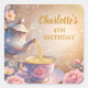 Adesivo Quadrado Floral Teacup & Teapot - Pastel Elegant Tea Party