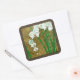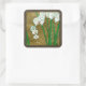 Adesivo Quadrado Flores brancas e caules verdes na borda marrom