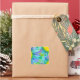 Um adesivo colorido brilhante decorado com três flores margaridas pintadas em aquarela em tons de blues, roxas e amarelo.
