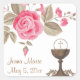 Bela imagem católica da comunhão do eucarista, do cálice e do hospedeiro com flores. Todo texto e fontes podem ser modificados. Oferecemos também convites, cartões, e favores da Comunidade, etc., compatíveis com este design. Visite o Chá de Rosas Shoppe no Zazzle e navegue na nossa grande coleção da Primeira Comunhão Santa.