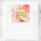 Adesivo Quadrado Flores Rosa em Aquarela Luxuosa com Moldura Dourad