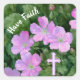 Adesivo Quadrado Flores Rosa e Cruz Têm Vinheta Fé