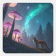 Adesivo Quadrado Floresta de Raposa de Cogumelo Brilhante Arte de F