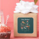 Um adesivo verde com uma bela nostálgica floresta verde e típica ilustração de Natal rosa e verde com animais florestais na natureza. Arte original de Caroline Bonne Müller