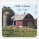 Personalize esses encantadores selos de envelope de casamento do Red Barn com os nomes pessoais da noiva e do noivo e a data específica da cerimônia de casamento. Estes adesivos de selo nupcial do estilo rancho chic, típicos do chic, apresentam uma fotografia de uma fazenda tênue de um antigo celeiro vermelho-curado e silo com um campo de girassóis selvagens amarelos em primeiro plano.