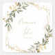 Estas selas de envelope de ouro geométrico são perfeitas para um casamento moderno. A design apresenta uma bela estrutura geométrica dourada com folhas verdes elegantes. Personalize as etiquetas com os nomes da noiva e do noivo e a data do casamento.