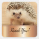 Folha de Ouro Faux Bonita Hedgehog Obrigado Sticker Quadrado Um adesivo de ourivesgo adorável com a coordenação da borda inferior da folha falsa. A verbiagem diz Obrigado! A verbiagem pode ser personalizada. Vestido de animal engraçado, vinheta de animal bonito,