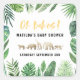 Folhagem tropical e efeito dourado animais chá de fraldas favorecem autocolantes. Folhagem de aquarela pintada à mão, texto de script e animais dourados fazem disso um tema divertido e moderno do chá de fraldas.