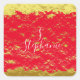 Adesivo Quadrado Folhas de Ouro Vermelho Brilho Monograma Inicial