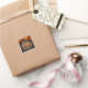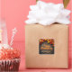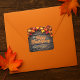 Uma cascata de folhas de outono vibrantes dança através de um fundo de madeira rústica nesta etiqueta personalizável de Dia de Ação de Graças. A mensagem central "Feliz Dia de Ação de Graças", escrita em uma fonte encantadora e comemorativa, destaca-se com um gradiente de tons quentes de colheita, enquanto um espaço para o nome da sua família adiciona um toque pessoal.