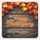 Adesivo Quadrado Folhas de Outono em Madeira Rústica Feliz Dia de A