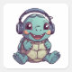 Adesivo Quadrado Fones de ouvido de Vestida de tartaruga-branca