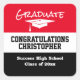 Um adesivo de boné de formatura moderno para seus convites para festas de formatura, anúncios, cartas de agradecimento e outra correspondência de formando. Cor vermelha, branca e preta da escola ou cores favoritas. Negrito e moderno.