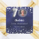 Fundo azul-marinho de cor irregular, decorado com estrelas prateadas falsas. Personalize e adicione uma foto, nome, idade, data.