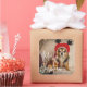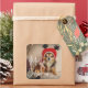 Essa etiqueta personalizada fofa tem uma design doce e sentimental, festiva. Uma fotografia de um cão engraçado com um chapéu de Natal cobrir o fundo. você pode personalizar o adesivo para incluir uma foto do seu próprio animal de estimação ou outra imagem personalizada. A frase "Feliz Natal" é impressa em uma fonte elegante de script no canto inferior esquerdo.