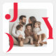 Adicione um toque de charme moderno de Natal com este adesivo de foto de Natal JOY. Com uma tipografia vermelha em negrito emoldurando a foto personalizada da sua família, este design minimalista é o toque final perfeito para presentes de Natal, cartões de Natal ou lembrancinhas de festa.
