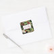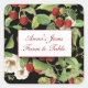 Adesivo Quadrado Framboesas Botânicas no Rótulo de Fundo Preto