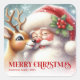 Add extra Christmas magic to your gifts, cards, and holiday décor with this adorable personalized sticker featuring a classic Santa Claus and his cheerful red-nosed reindeer, Rudolph. Designed in a cute, nostalgic style, this festive sticker brings warmth and whimsy to every surface. Personalize it with a name or short message to create unique Christmas labels for kids, family, party favors, treat bags, mailers, scrapbooking, or DIY holiday crafts. The charming Santa and Rudolph artwork makes it a perfect choice for children's gifts, stocking stuffers, school events, and festive party decorations. Whether you’re preparing holiday packages, decorating your planner, or adding a special touch to Christmas cards, this high-quality custom sticker adds cheerful personality to every celebration. A delightful, customizable accessory that spreads joy all season long.