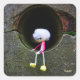 Adesivo Quadrado Fubby poppetje dat in een muur zit.