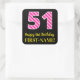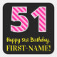 Adesivo Quadrado Fun Pink Stripes “51”: Happy 51st Birthday + Name