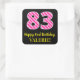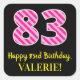 Adesivo Quadrado Fun Pink Stripes “83”: Happy 83rd Birthday + Name