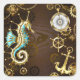 Adesivo Quadrado Fundo de madeira com cavalo de mar mecânico