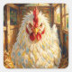 Adesivo Quadrado Funny Close Up of Impasto Chicken that looks Mad