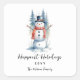 Funny Cute MInimalist Snowman Frosted Forest Christmas Square Stickers.