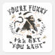 Design do Halloween engraçado e assustador com um esqueleto engraçado da Grim Reaper segurando uma cicatriz e dizendo: "Você é engraçado, eu te pegarei por último". Um jogo perfeito para a celebração do Dia das Bruxas, assim como para o uso diário.
