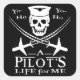 Adesivo Quadrado Funny Pilot Skull Cross Airplanes Pirata Humor