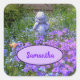 Uma estátua encantadora de uma garotinha olha em maravilha para um cheio de jardim de flores de flox violeta azul e nãos-me-esqueço azuis e brancos. Uma íris anã de pêssego completa a foto. Vestir seu correio com esses bonito adesivos quadrados que podem ser usados como selagens de envelopes para ir com etiquetas de endereço de retorno, papelaria, etc. Personalize-os com os vários estilos de fonte e cores diferentes do Zazzle. Este design pode ser transferido para outros produtos. Se precisar de ajuda, por favor, não hesite em me contactar, e eu ficarei muito feliz em ajudá-lo. Você pode me contatar através da minha página de Arte da Lua do Lobo e Design no Facebook. Direitos autorais originais de 2011 por Karen Cofsense.