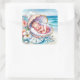 Adesivo Quadrado Garota bebê em um Chá de fraldas de concha