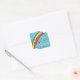 Belo design de etiqueta quadrada personalizada apresentando um arco-íris, estrelas e nuvens com uma área para o seu texto. O texto é totalmente personalizável.